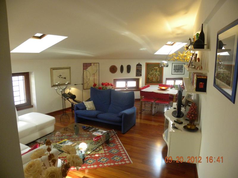 L'appartamento gode di una gradevole vista sulle montagne, che valorizza ulteriormente la percezione e l'abitabilità degli spazi. Completa la proprietà un'ampia "cantina" nel sottotetto al terzo piano, ideale per essere utilizzata come deposito o per altri usi, oltre ad un garage e ad un comodo posto auto coperto. Per chi avesse esigenze di maggiore metratura, vi è la possibilità di acquistare una stanza adiacente, appartenente a un'altra proprietà, per un eventuale ampliamento dell'abitazione.