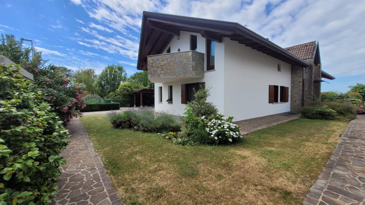 SIGNORILE VILLA CON GIARDINO. L'abitazione, costruita su un lotto di circa 2000 mq nel biennio 1999-2000, si sviluppa su tre piani (di cui uno interrato) con una superficie commerciale complessiva di circa 550 mq. Il piano interrato, di 200 mq utili, è adibito a funzioni tecniche e di servizio, e include una stireria, una taverna o palestra, un deposito attrezzi, una cantinola, un ripostiglio aggiuntivo, una sala termica, una lavanderia, un bagno con antibagno e una cantina dotata di vespaio areato (vuoto sanitario). Il piano terra, di 209 mq utili, accoglie gli spazi più vissuti della casa ed è caratterizzato sin dall'ampio ingresso dominato da una scala molto scenografica, che crea un divisorio ideale tra la zona giorno e la zona notte. La zona giorno è luminosa e ben organizzata con cucina, tinello, dispensa, antibagno, WC e un ampio soggiorno. La zona notte è raggiungibile dal disimpegno e prevede una camera matrimoniale con spogliatoio e servizio personali, due camere ed un ulteriore servizio. Il primo piano, di 178 mq, presenta un particolare ballatoio soppalcato che si affaccia sul salotto sottostante ed è adiacente a una grande stanza utilizzabile come studio o biblioteca. Vi sono inoltre una camera, un servizio con annesso antibagno e un ulteriore studio. Esternamente è stato aggiunto uno stabile accessorio destinato ad autorimessa, deposito attrezzi e legnaia. Le finiture sono di alta qualità e conferiscono alla casa una personalità unica, evidente risultato di un accurato progetto architettonico. Tra le peculiarità si possono citare: la certificazione energetica Classe D, un impianto fotovoltaico da 4,5 kW, un sistema antifurto, la climatizzazione e il riscaldamento a parete, con una piccola parte a pavimento. Le aree esterne e il giardino sono curati e piantumati con attenzione. TRATTATIVA IN SEDE